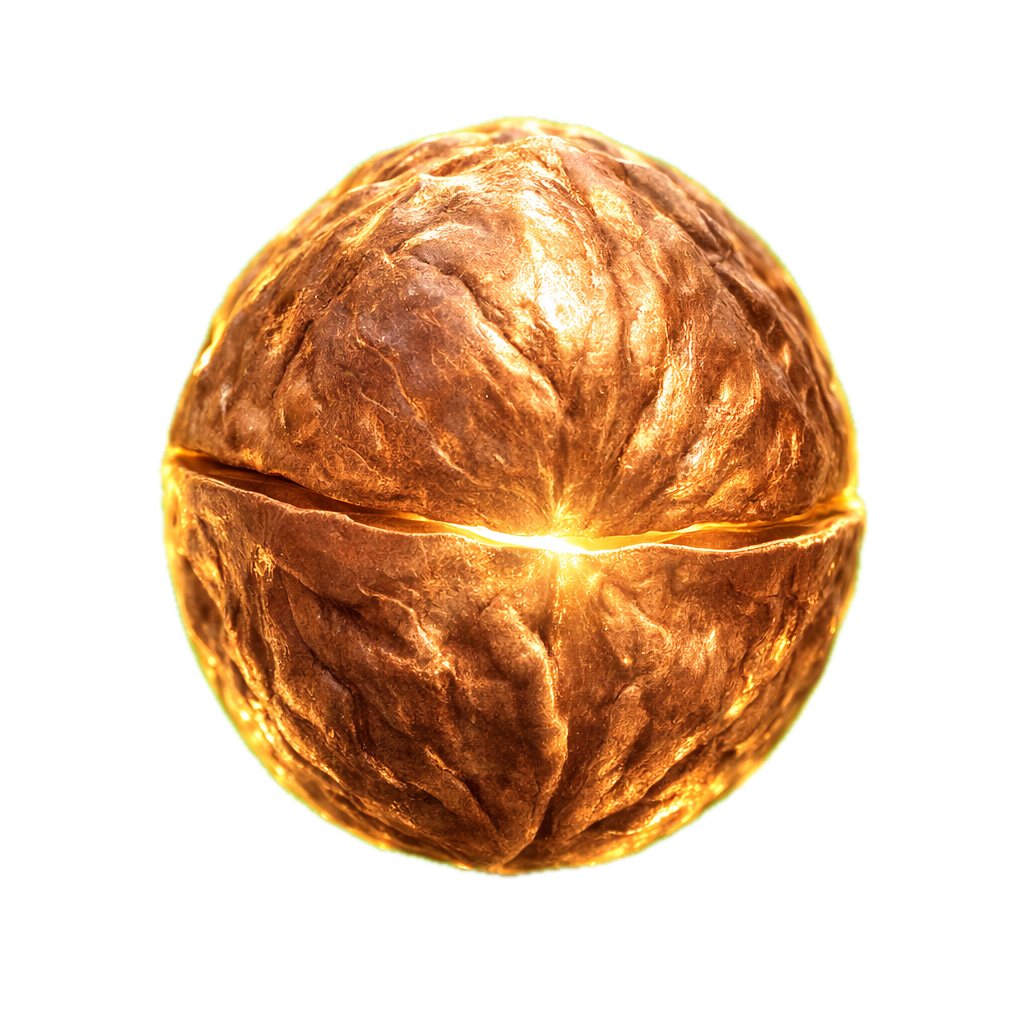 We didn't force this metaphor. The kernel of a walnut is shaped like a brain. Vascular bundles act as transport networks. Nature already built it.